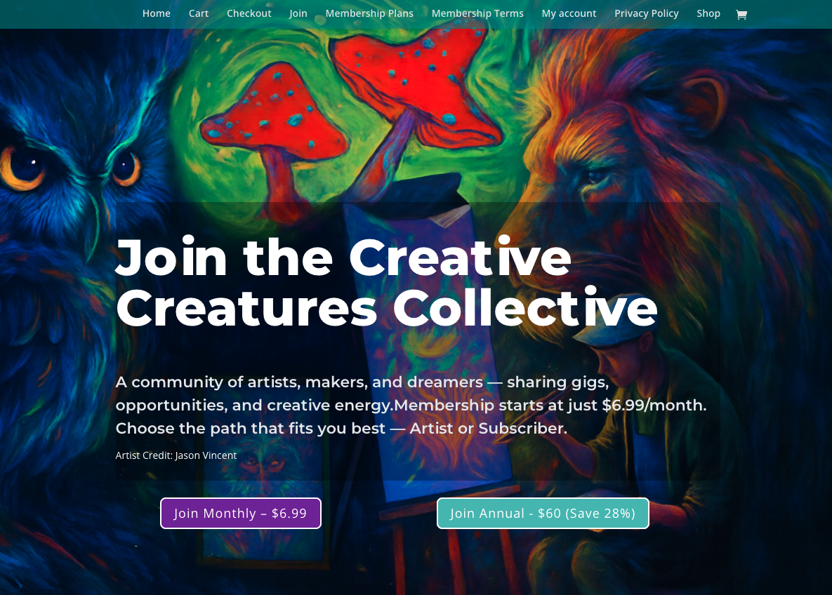 Multi-artist membership platform with WooCommerce integration for art sales and subscriptions.